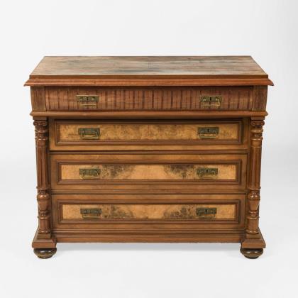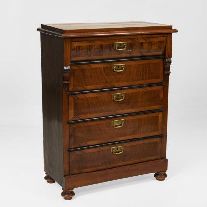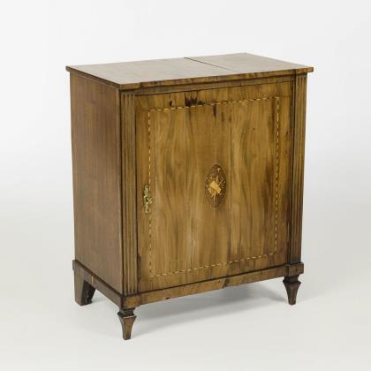 Vorwiegend Nussbaum furniert. 99 x 78 x 49 cm.