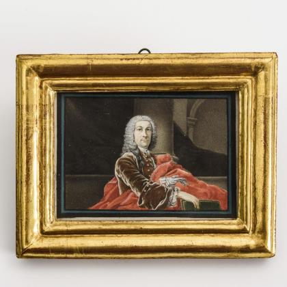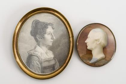 2 miniatures: portrait of a man as trompe-l'oeil and portrait of a lady