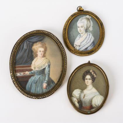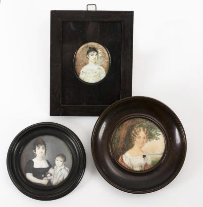 3 Biedermeier miniatures: portraits of ladies, 1x child