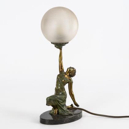 Bronze, mattiertes Klarglas mit Aufschmelzungen und Mattschliff. H maximal 38 cm.
