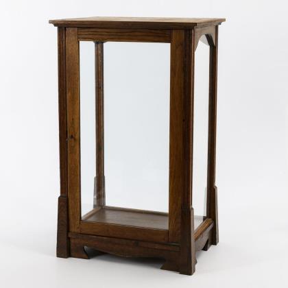Mahagoni massiv und gebeizt. Ca. 95 x 44 x 44 cm (ohne Kurbel gemessen).