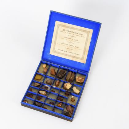 Amber collection in collection box. Stantien & Becker, Königsberg/Prussia.