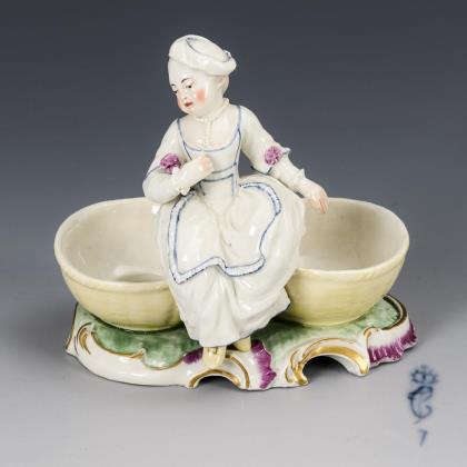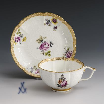 Baroque double-handled cup, saucer from the Royal Court Confectionery. Meissen.