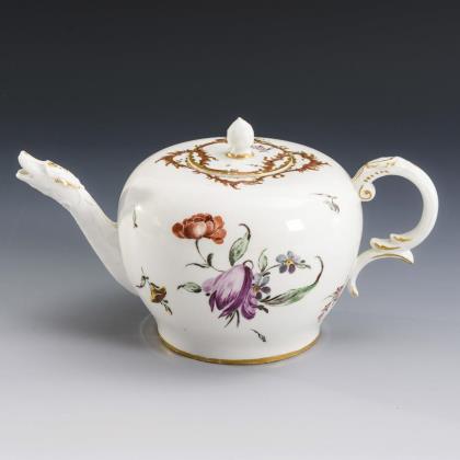 Teekännchen mit Tierkopfröhrenausguß, Rocaillehenkel und Knaufdeckel