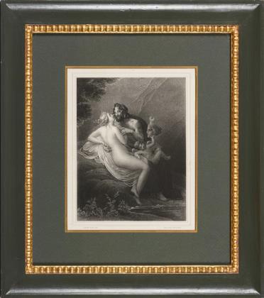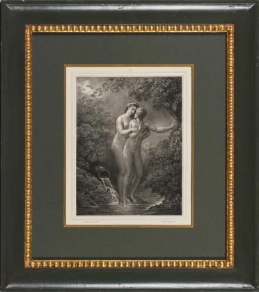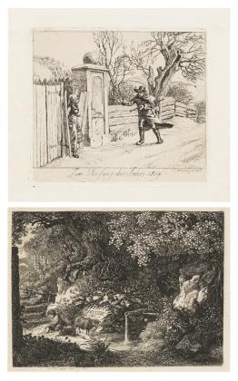 Neujahrsbillett zum Anfang des Jahres 1819: Winterlandschaft, Platte: 11,5 x 13 cm, Blatt: 15 x 16 cm, im Passepartout: 35 x 31 cm, Radierung auf gewälztem China, etwas stockfleckig | Neujahrsbillett zum Anfang des Jahres 1813: Knabe mit Schafen vor Stein, Blatt: 11 x 14 cm, im Passepartout: 31 x 34 cm, Radierung auf Bütten, Wasserzeichen, Blatt beschnitten, minimal stockfleckig