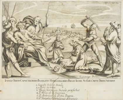AUBRY, Johann Philipp (b. c. 1660). History painting: Beheading of three Capuchins in Ethiopia.