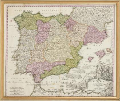 HOMANN, Johann Baptist (1664 Oberkammlach - 1724 Nuremberg). Map of the Iberian Peninsula.