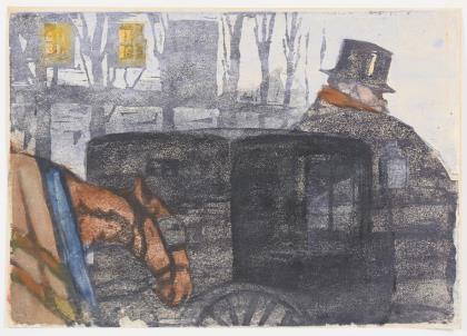WENZEL, Martha (1859 Lippehne - 1943). Waiting coachman in front of festival hall.