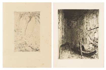MEID, Hans (1883 Pforzheim - 1957 Ludwigsburg). 2 works: "Idylle" and Nocturnal Scene with Gondola.