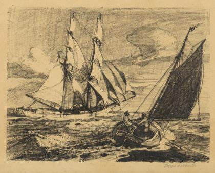 FIGURA, Hans (1898 Nagykikinda - 1978 Vienna). Sailing ships in atmospheric surroundings.