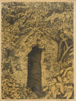 REUSCH, Louise (1865 Gut Rheinfels - 1955 St. Goar/Rhine). Shrine with figure of the Virgin Mary in mountainous landscape.