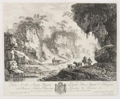 LANDERER, Ferdinand (1730 Stein unter Ems - 1796 Vienna). Rocky brook landscape with shepherds and their flocks.