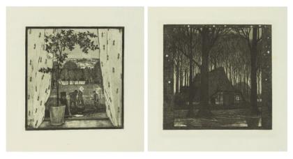VOGELER, Heinrich (1872 Bremen - 1942 Kolchos). 2 works: "Vor Feierabend" and "Märznacht".