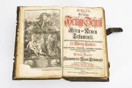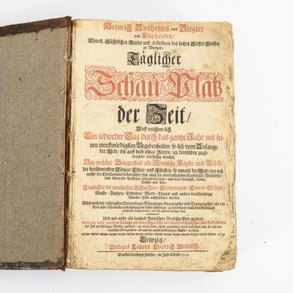 Beinhaltet auch: Spanische Succesions-Krieg, Nordische Krieg, Türcken-Krieg in Ungarn und Dalmatien zu Wasser und zu Land, Lebensbeschreibungen von Leopold I. und Joseph II. und anderer Herrscher der Zeit. Titelblatt, (10), 764, (28) Seiten. Ledereinband