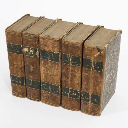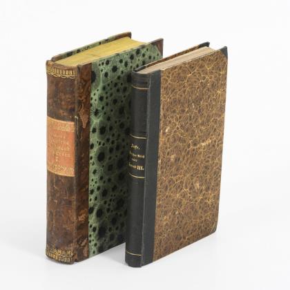 3 von 4 Bänden, Band 4 fehlt. 5. Auflage. 32, 421, (19) / 488 und 432, (16) Seiten. Alle im Ledereinband mit Goldprägung und Marmorschnitt