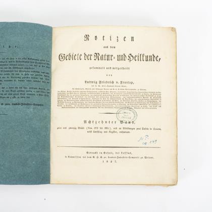 VON FRORIEP, Ludwig Friedrich. "Notizen aus dem Gebiet der Natur- und Heilkunde".