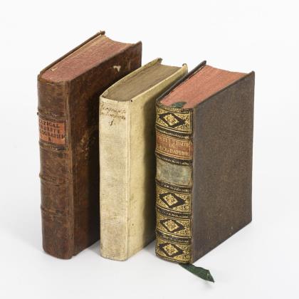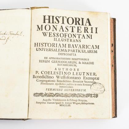 Nicolai BURGUNDI: "Historia Bavarica sive Ludovicus IV. Imperator", "cultissimum opus iterum praefatione Justus Christophorus Böhmer", Typis & sumtibus Salomonis Schnorri, Helmestadi (Helmstedt) 1705. Titelblatt, (6), 180 Seiten. / Danielis PAREI: "Bavarico-Palatina." "Georgius Christianus Joannis recognouit ...", Sumtu Friderici Wilhelmi Foersteri, Francfurti ad Moenum 1742. 148, (12), 624, (41) Seiten. Im Pergamenteinband mit goldgeprägtem Lederrücken, Blauschnitt. 21 x 17 cm