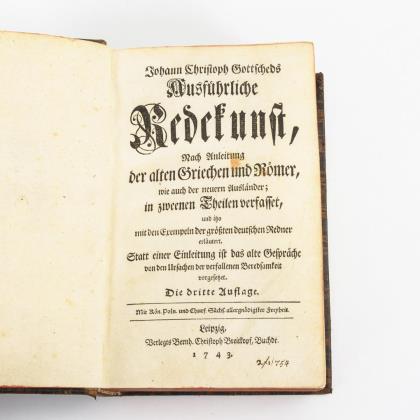GOTTSCHED, Johann Christoph. "Ausführliche Redekunst nach Anleitung der alten Griechen und Römer".