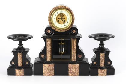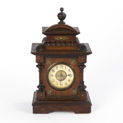 Messingräderwerk mit Halbstundenschlag auf Eisenglocke, Funktion nicht geprüft, Werk läuft laut Einlieferer. Weißes Emailzifferblatt mit römischen Zahlen, Minutenkranz und geschnittenen Zeigern, bezeichnet "BAZUREL à St. Trivier-de-Courtes".