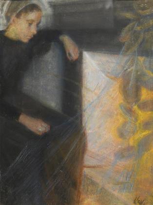 Das Motiv von herber und melancholischer Schönheit ist fein interpretiert. Breiter profilierter Flammleisten-Rahmen