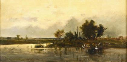 CARMIENCKE, Dedo (1840 Copenhagen - 1907 Berlin). "Evening Landscape - Motif from Silesia".