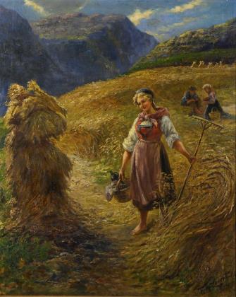 PERRET, attributed to Aimé (1847 Lyon - 1927). Hay harvest.