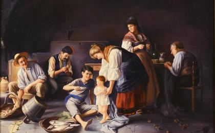 KÁSZONYI, Edgár (1900 - 1976). Genre scene with people at the fire.