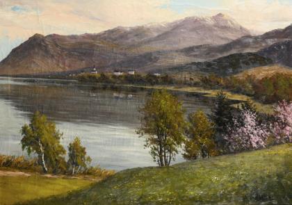 VON SZPINGER, Alexander (1889 Weimar - 1969 Weimar). "View of a lake.