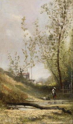 Landscape painter around 1900/1910: clearing with pond.