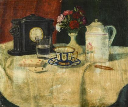 HUTH, Franz (1876 Pößneck - 1970 Weimar). Still life with porcelain figure.