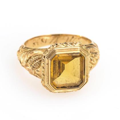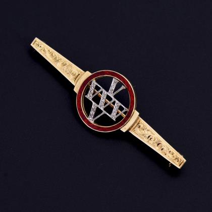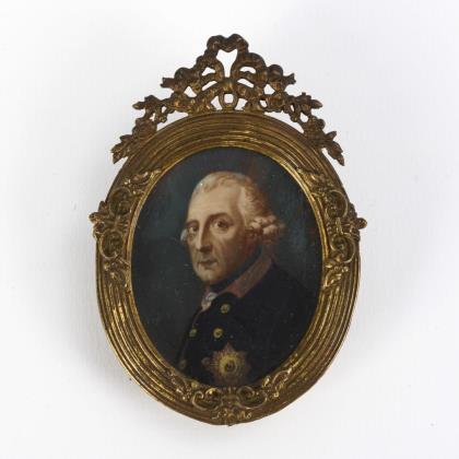 Relief-Porträt eines Habsburger Regenten mit ausgeprägtem (erblichen) Unterkiefer der österreichischen Monarchie. Montierung von Meister Dominikus Würth (1815 Aufnahme ins Gremium). Rückseitig Nadel zum Anstecken. Punzen: Wiener Bechauzeichen mit Feingehalt, undeutliche Jahreszahl, Meistermarke DW