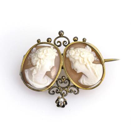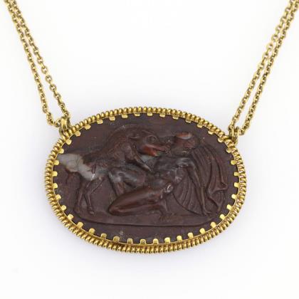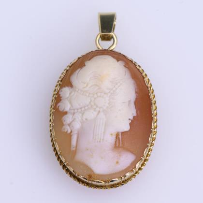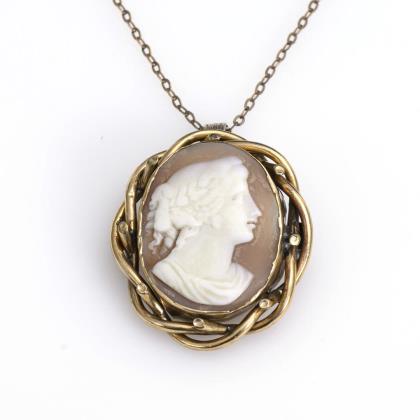 Brooch/pendant with shell cameo 2nd h. 19th c. on long chain.