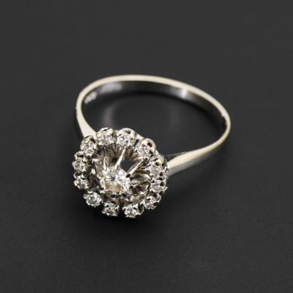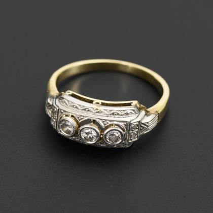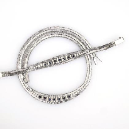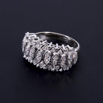 Durchbrochen gearbeitet. 42 kleine Diamanten. Stabile volle Schiene. Ohne Punzen, Feingehalt mit Säure geprüft. Im Etui