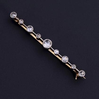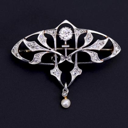 Art Nouveau brooch with old cut diamond and diamond roses.