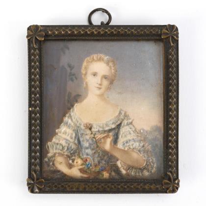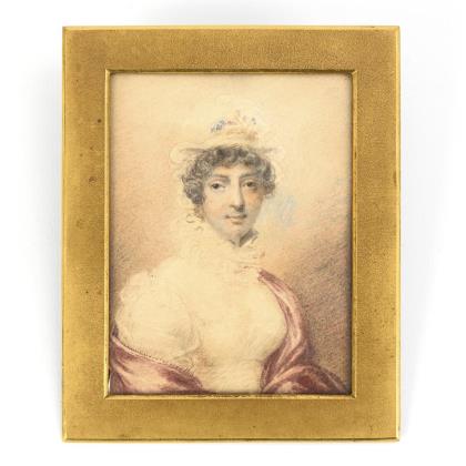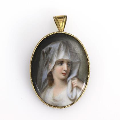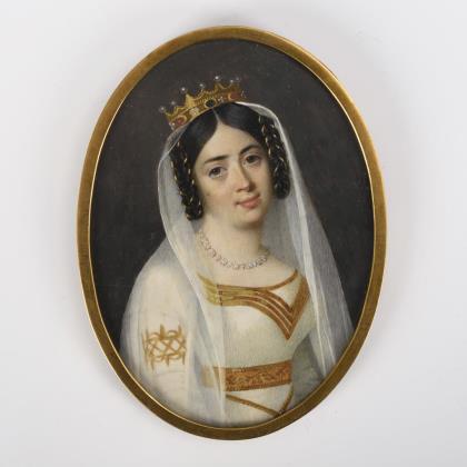 Qualitätvoll gemaltes Bildnis einer jungen Frau mit Krone und Schleier.