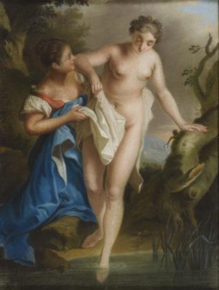 Genre painter early 19th century: Young woman bathing.
