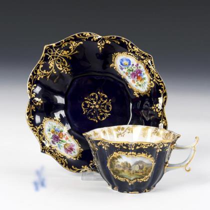 View demitasse with cobalt background. Meissen.