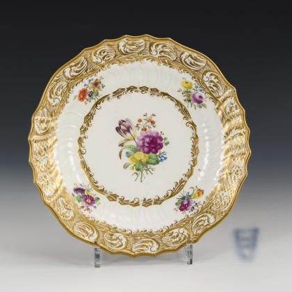 Baroque saucer with woodcut flowers| see supplement. Meissen.