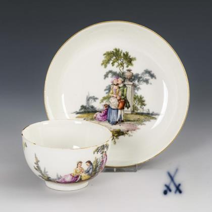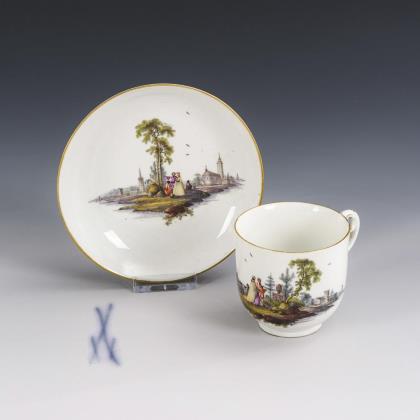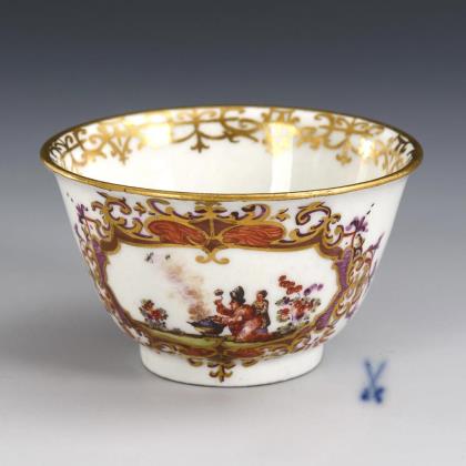 Baroque cup with Watteau painting. Meissen.