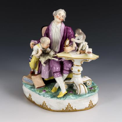 Group of figures: gentleman with child and monkey. Vienna.
