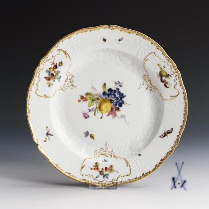 Baroque plate with fruit and flower painting. Meissen.