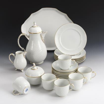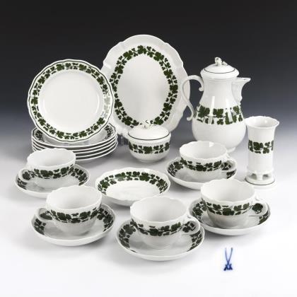 21 pieces of a coffee service with vine leaves decor. Meissen.