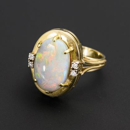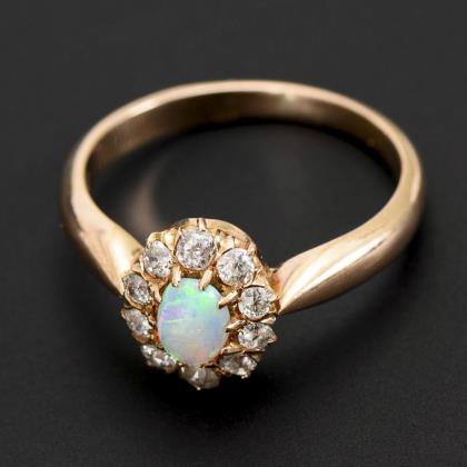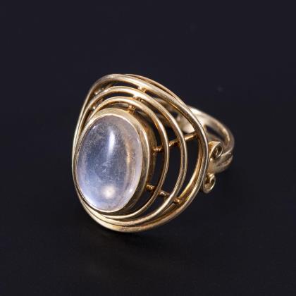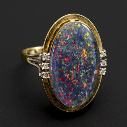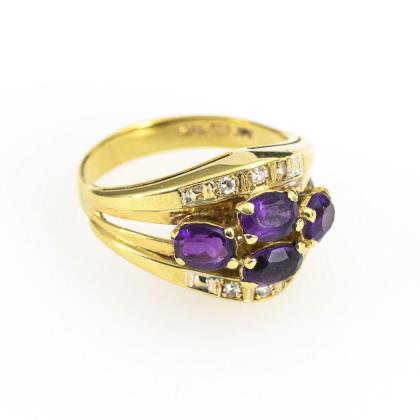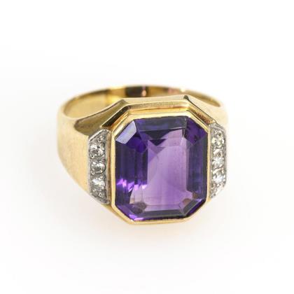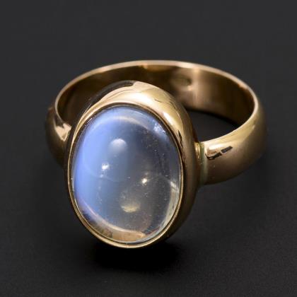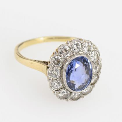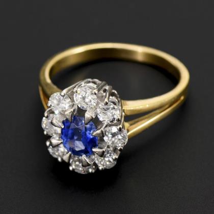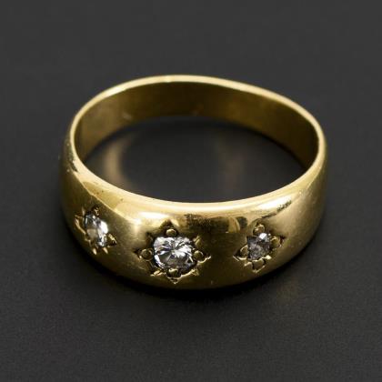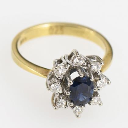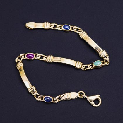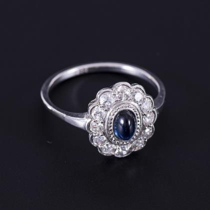 Schmale stabile Schiene. 1 Saphir-Cabochon, 12 kleine Diamanten circa 0.36 ct
