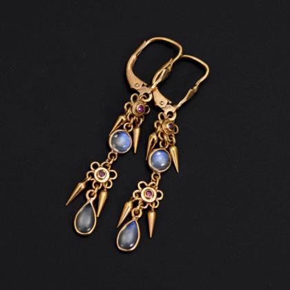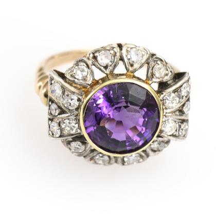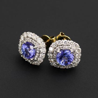 Pair of stud earrings with tanzanites?, diamonds and diamonds.