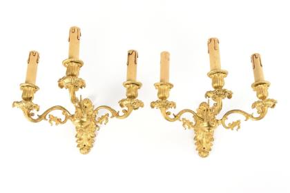 Wandappliken im Empire-Stil mit Palmetten und Blattfriesen sowie Volutenarmen. Entfernte Elektrifizierung.