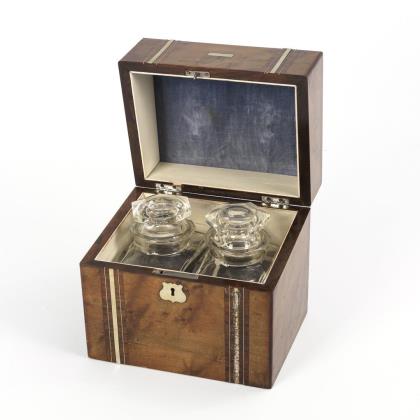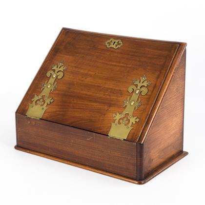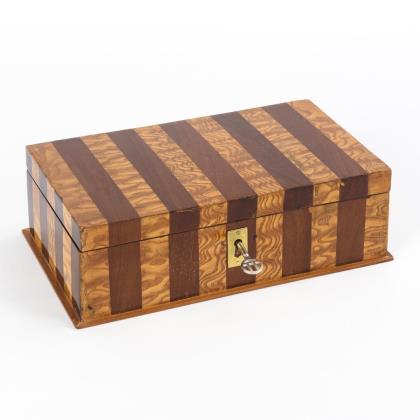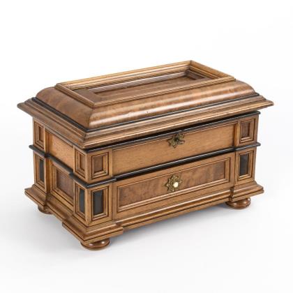 Nussbaum und Eiche dunkel gebeizt. 21 x 31 x 22 cm.