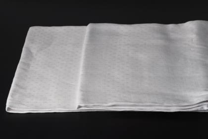 Tuch mit Muster der Neuen Sachlichkeit. Breiter Jaquardstreifen auf glattem Grund. Mittig Rechteck mit breiten Streifen. Gesticktes Monogramm HM