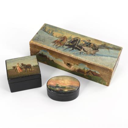 3 painted Russian cans. Abramtsevo, Vishnyakov, Palekh.