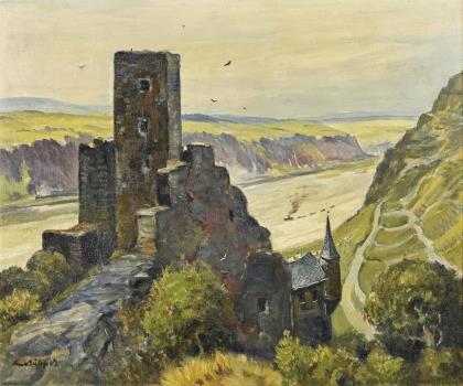 BIELEFELD, Bruno (1879 Blumenau/East Prussia - 1973 Berlin). "Gutenfels Castle on the Rhine.