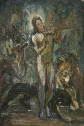 KÖNIG, Leo von (1871 Brandenburg - 1944 Tutzing). Orpheus in a circle of wild animals listening to his music.